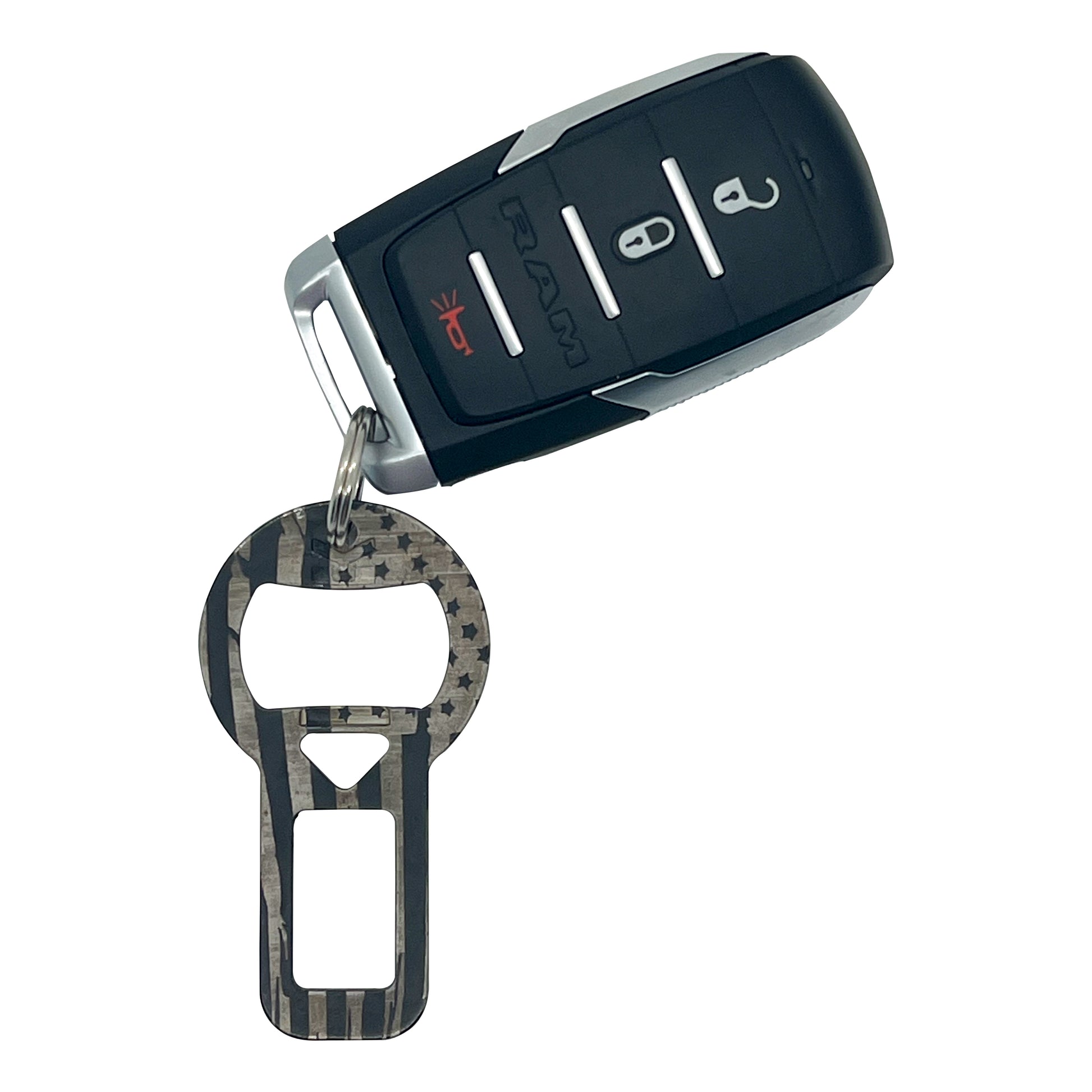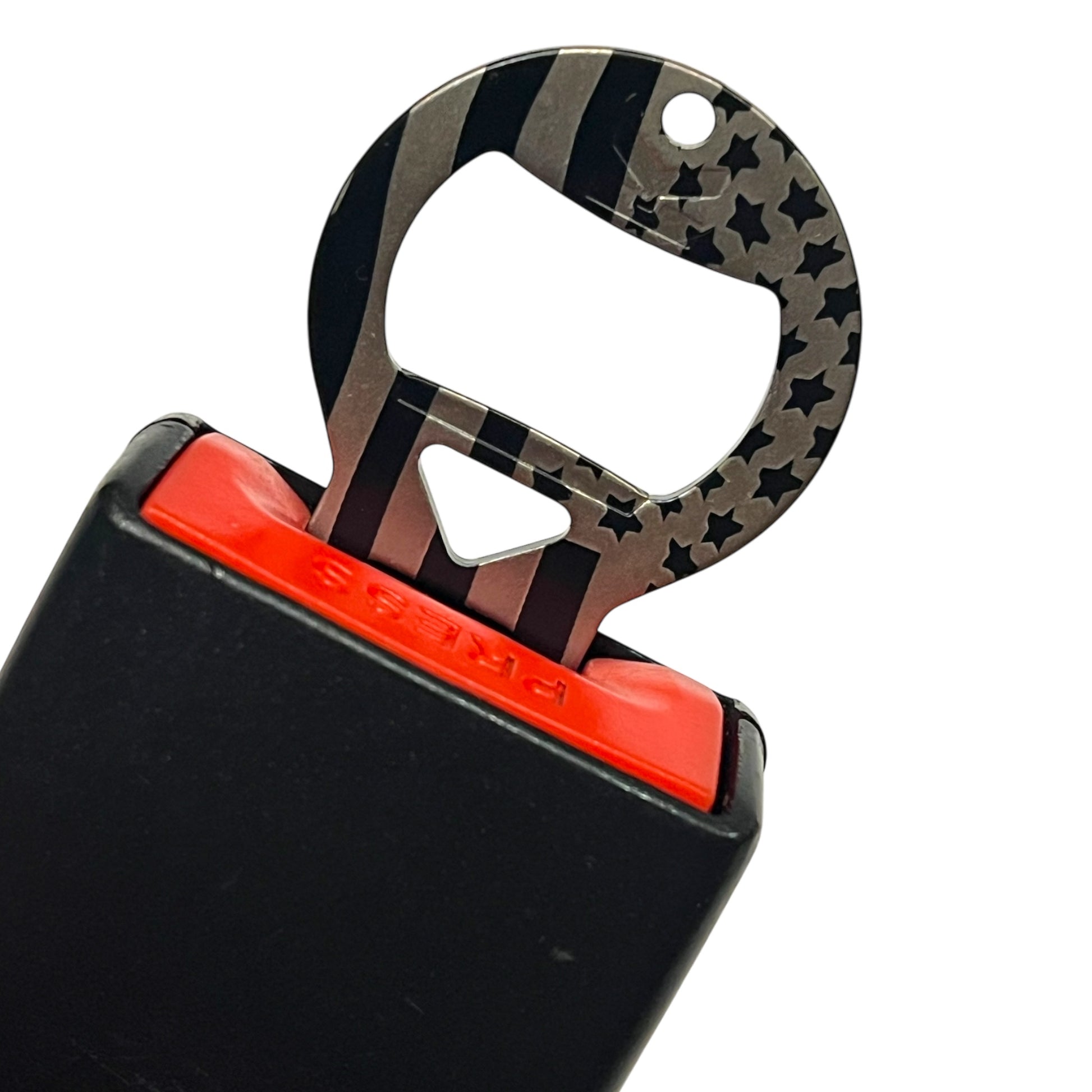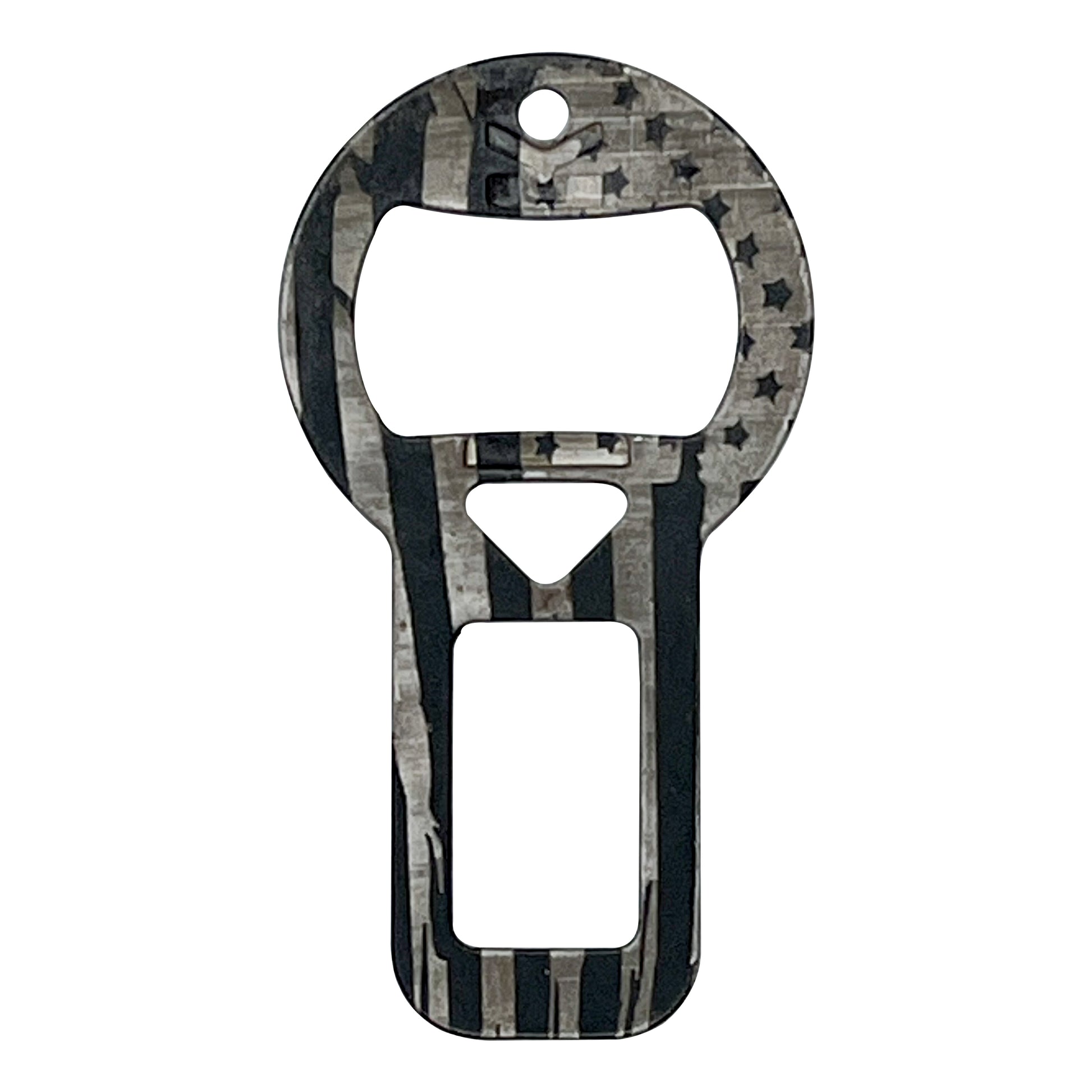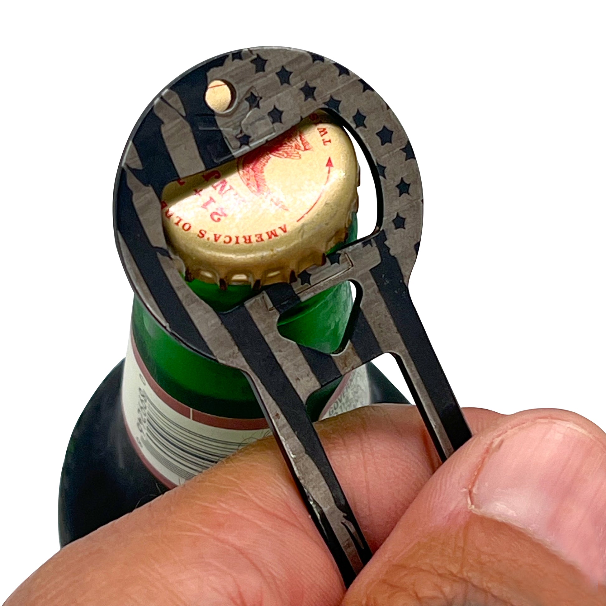 Made of solid steel with a patriotic laser finish.