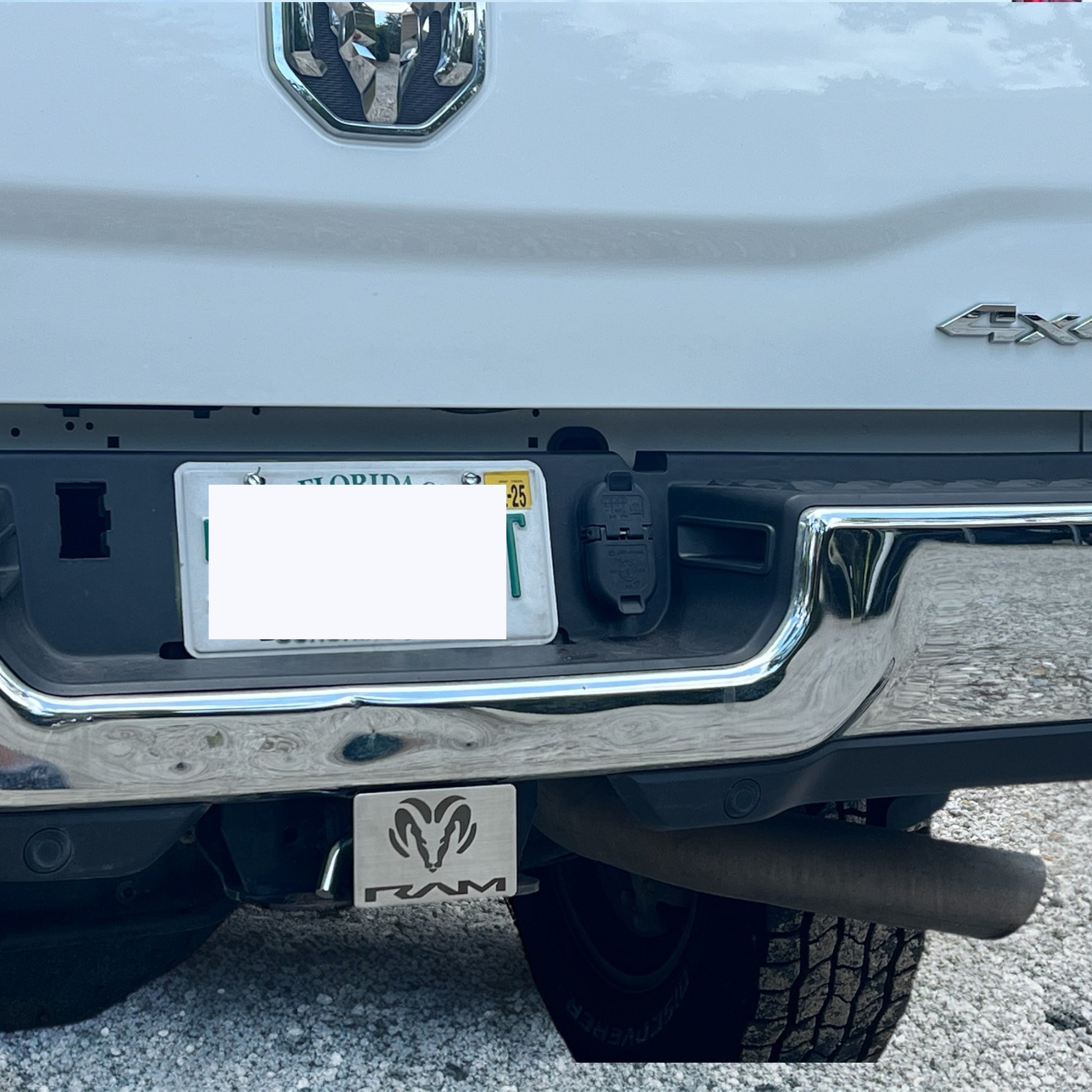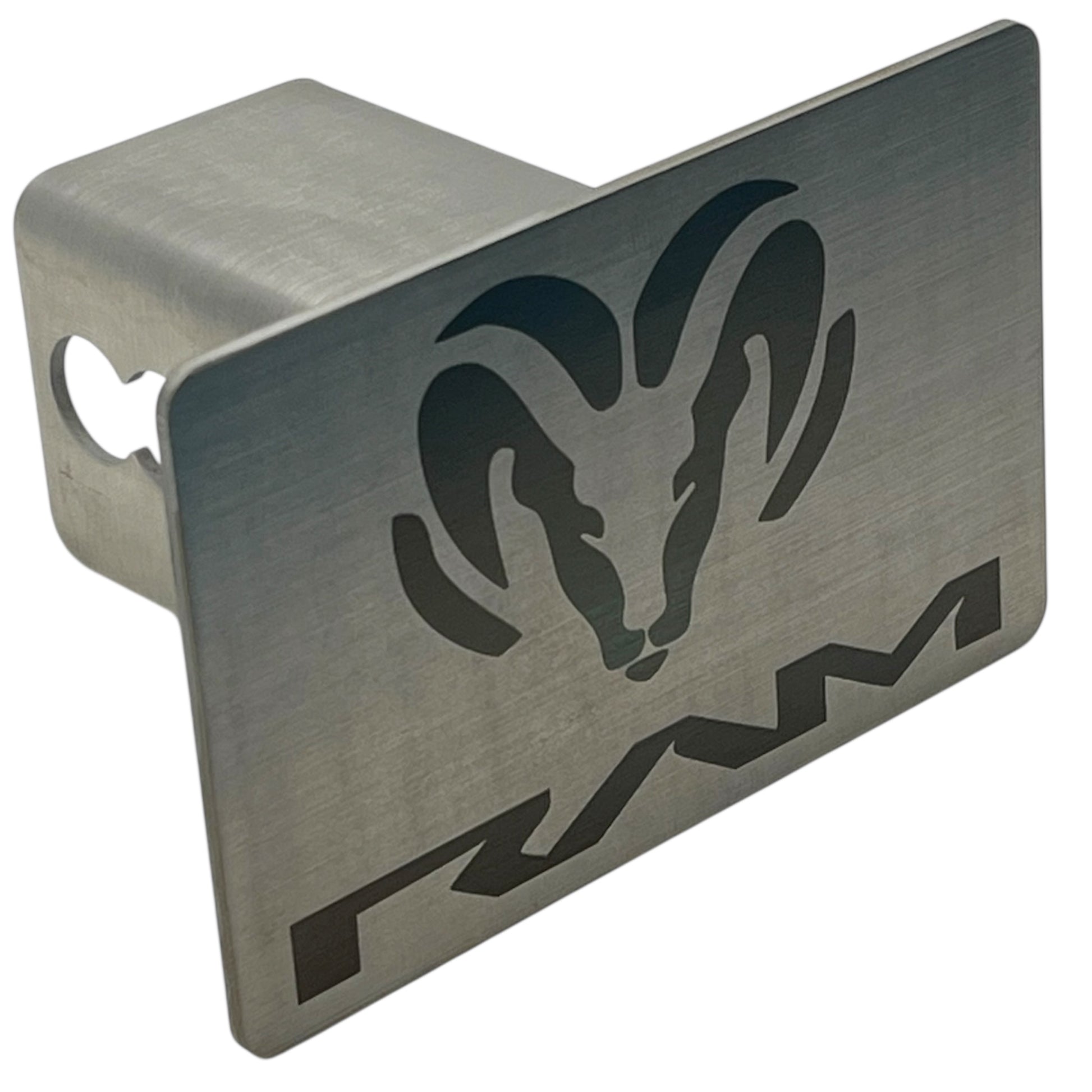 This hitch cover fits in 2" receivers (or 2.5" with your adapter). Its made right here in house with heavy gauge 304 Stainless Steel. Available in both a brushed stainless finish or black powder coat.